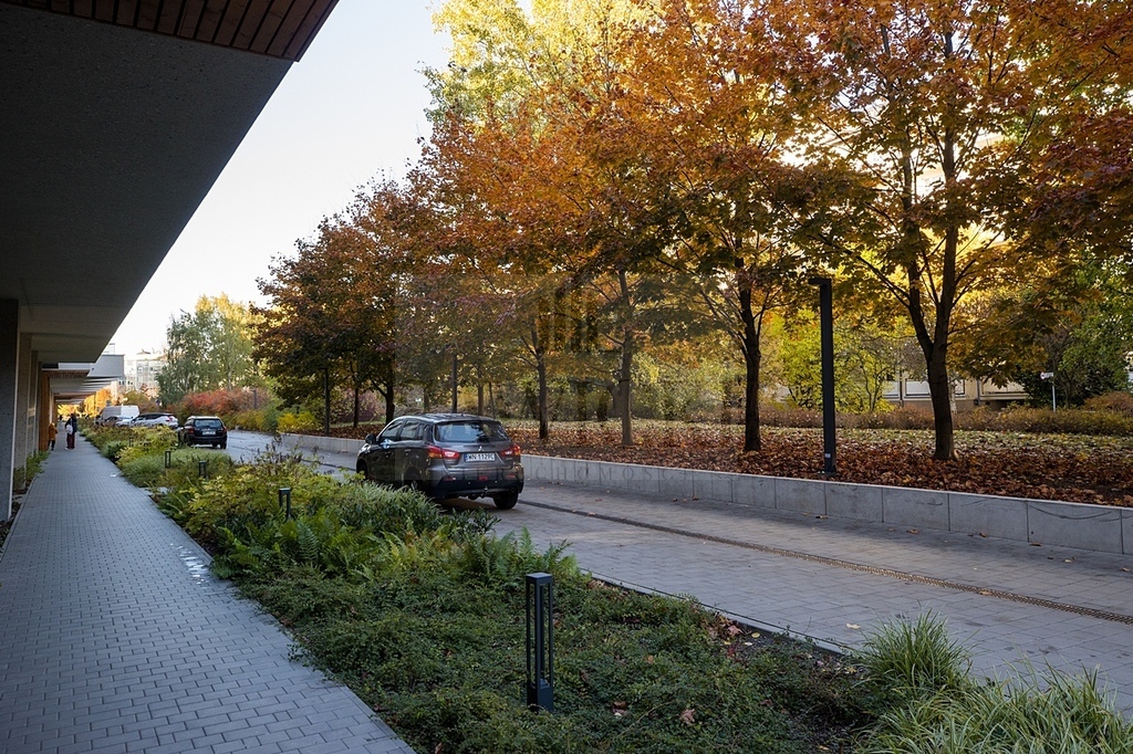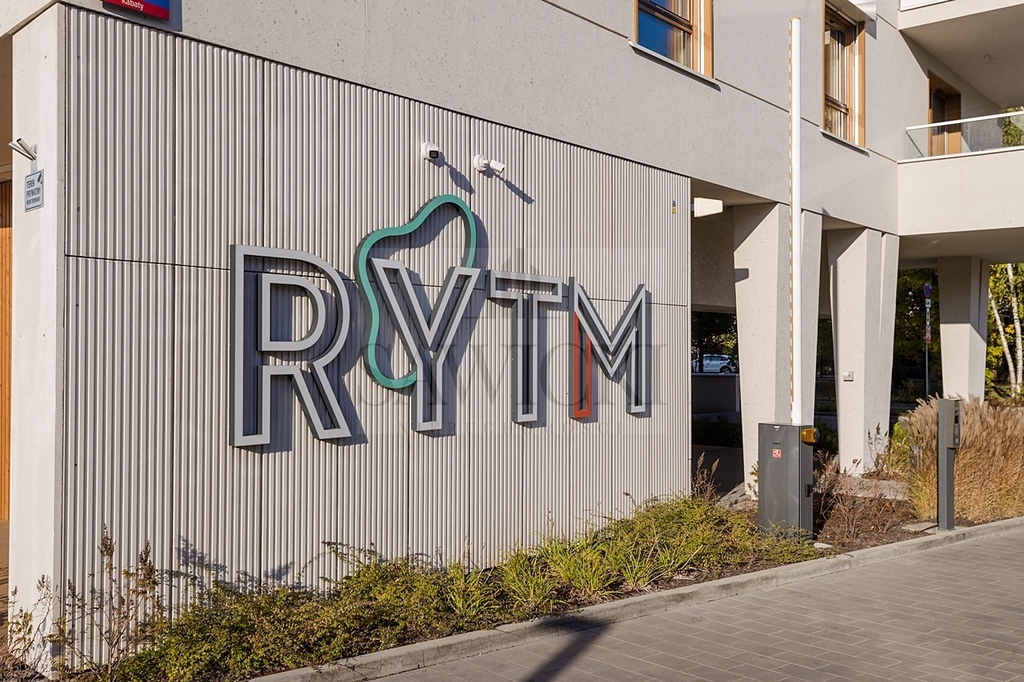Apartamentowiec RYTM z 2024 roku. Przestronne klatki schodowe, winda, monitoring, ochrona. Garaż pod budynkiem. Pięknie zagospodarowane otoczenie - zieleń, alejki spacerowe, elementy małej architektury. Do dyspozycji lokatorów przygotowano taras widokowy na dachu i obszerną rowerownię przy każdej klatce.